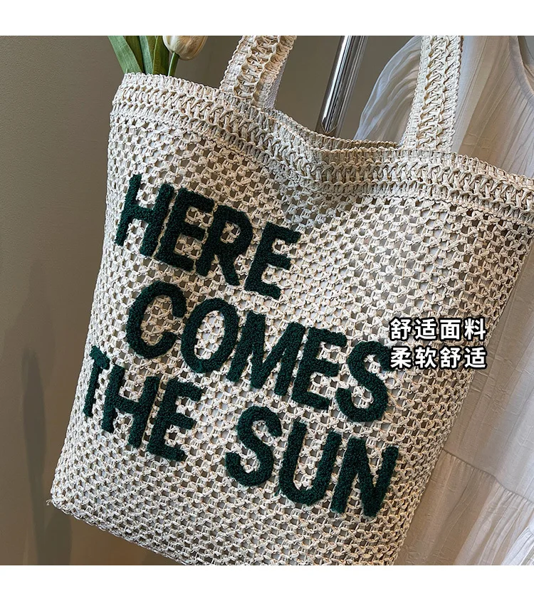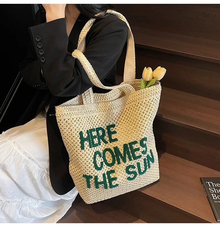 Embrace effortless summer style with this beautifully crafted straw shoulder bag that perfectly balances fashion and function. The eye-catching embroidered lettering adds a playful touch to the classic woven design, making it your go-to accessory for beach days, shopping trips, or casual outings.