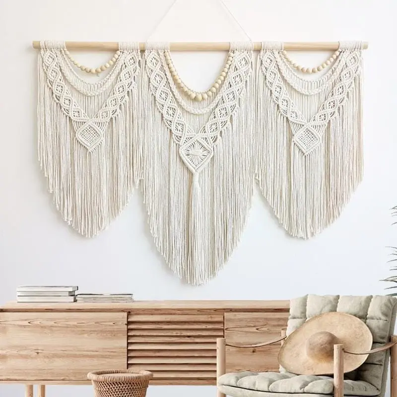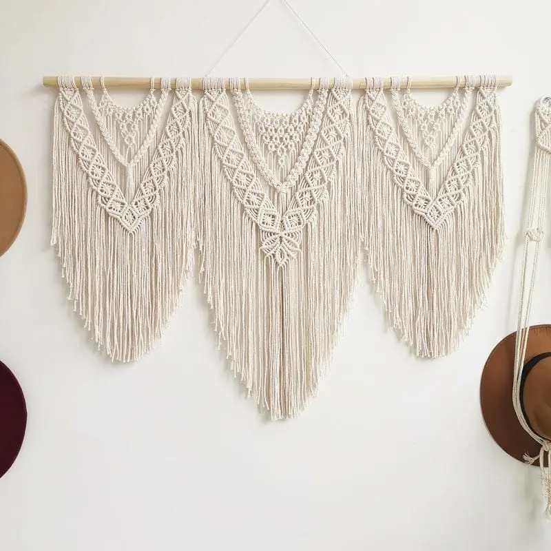 Care: Available in three sizes; includes sturdy wooden dowel and rope attachment for easy installation; gentle dusting with soft brush recommended