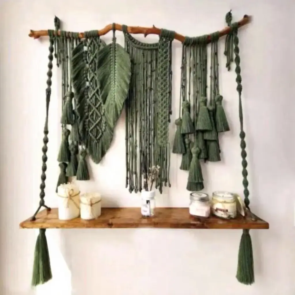 Combine functional storage with artistic display through hand-woven tapestry shelving featuring integrated hanging plant baskets. This multifunctional unit transforms spaces into Instagram-worthy botanical focal points. Perfect for guesthouses, balconies, and bedrooms seeking bohemian elegance with practical organization.