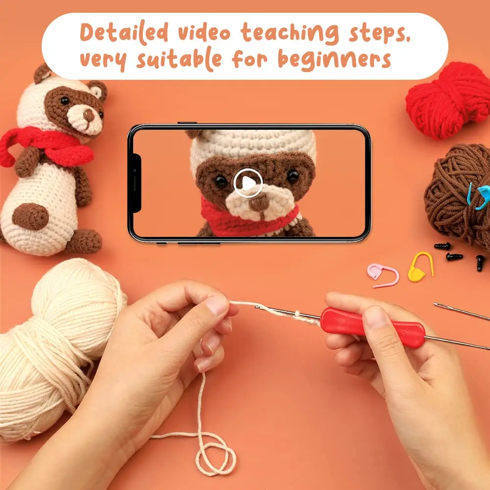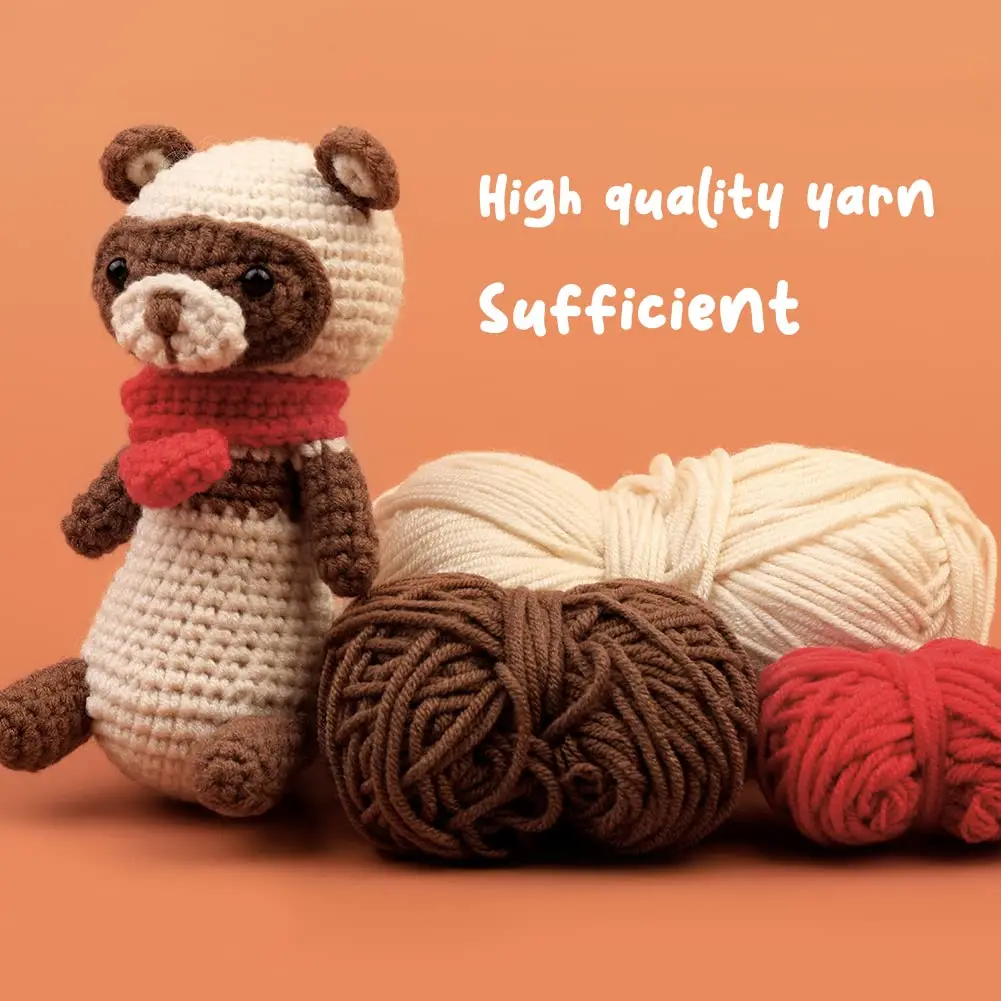 This animal crochet kit features complete supplies with yarn balls, crochet hooks, stitch markers, and needles for creating adorable fox or ferret. The beginner-friendly package includes step-by-step video tutorials and paper instructions making crafting journey easy and enjoyable. Perfect for family time with cute handmade results ideal for gifts and precious bonding moments.