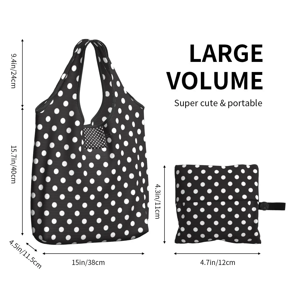Make a timeless fashion statement while supporting sustainable shopping with this elegant polka dot tote bag – where classic style meets modern responsibility!