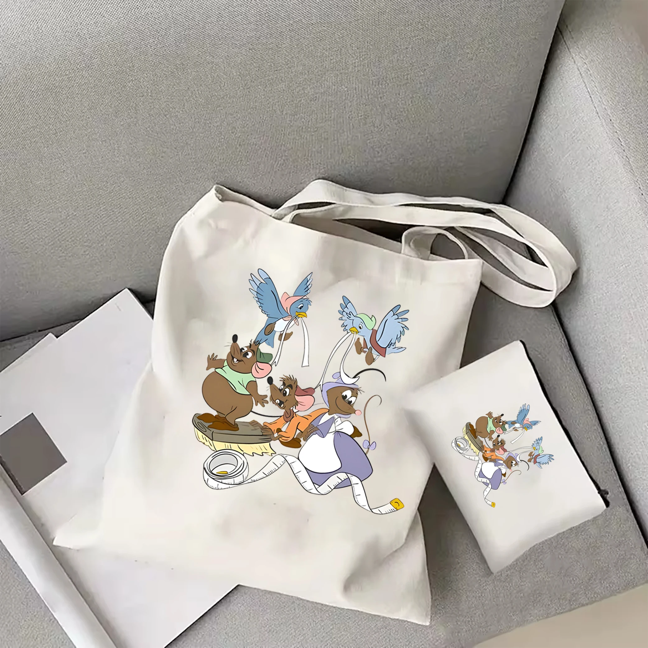 Bring the magic of Disney’s Cinderella to your everyday style with this adorable Jaq and Gus graphic tote bag. Featuring the beloved mouse duo in trendy Harajuku-inspired artwork, this canvas bag perfectly combines Disney nostalgia with contemporary street fashion for the ultimate princess accessory.