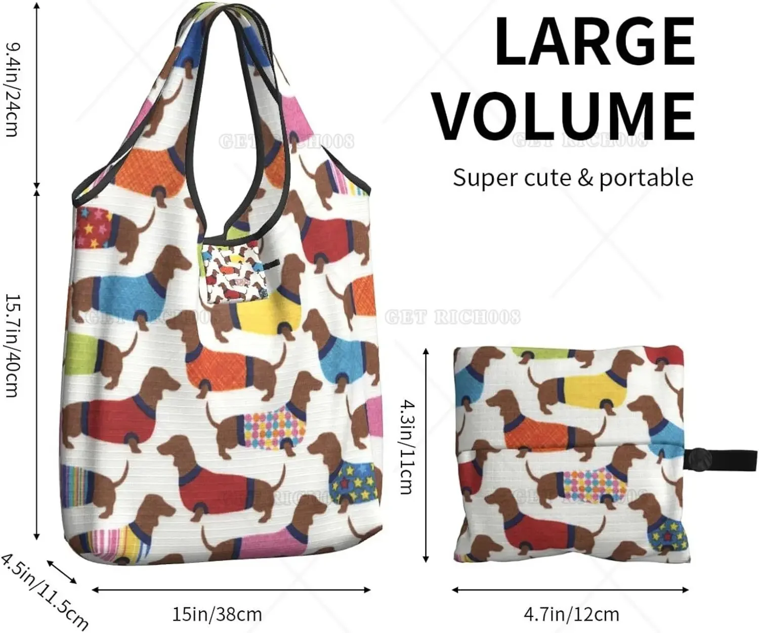 Spread holiday cheer with adorable wiener dogs! This charming Christmas-themed tote bag features dachshunds in festive sweaters – the perfect blend of cuteness and practicality for your holiday shopping!