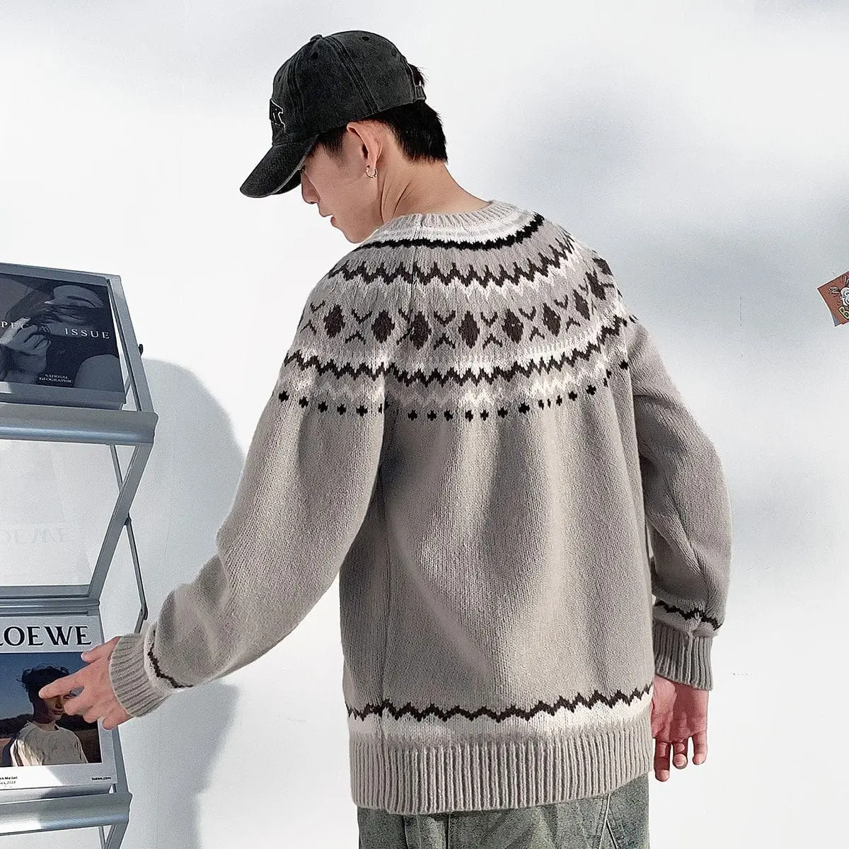 The fair isle color block sweater captures current 2024 winter trends. The modern aesthetic appeals to style-conscious men seeking distinctive appeal. Moreover, the timeless fair isle design ensures lasting relevance always. Furthermore, the trendy appeal makes this piece an essential wardrobe staple.
