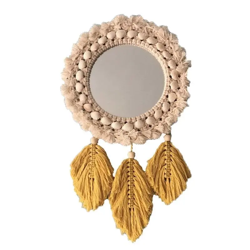 Combine functionality and art with hand-woven feather mirror featuring colorful natural feathers and reflective glass. This European bohemian piece functions as makeup mirror, wall art, and Instagram-worthy focal point. Perfect for guesthouses, bedrooms, and creative spaces celebrating artistic expression and personal style.