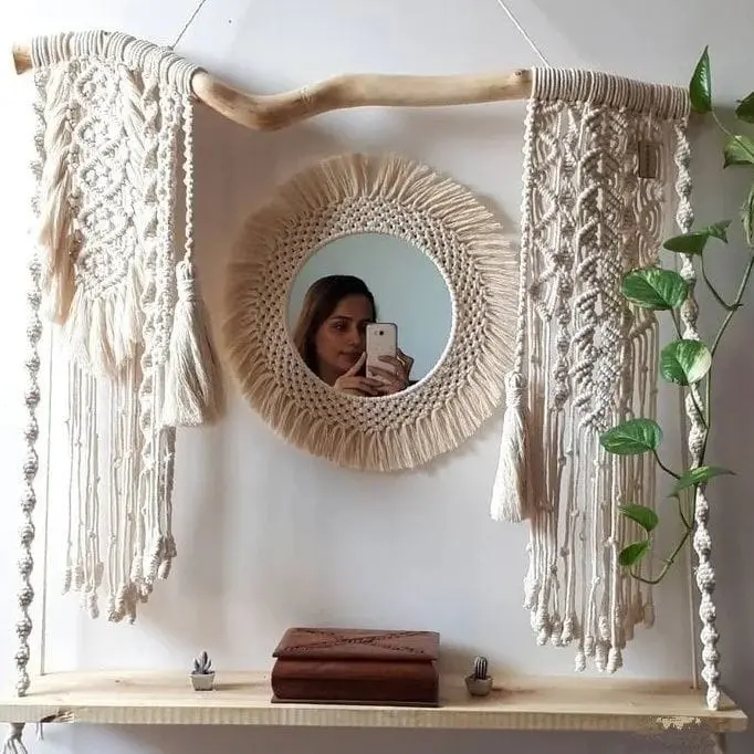 Elevate your entire living space with our exclusive kit of hand-woven Bohemian high-end tapestries, a carefully curated collection of artisan home furnishings designed for discerning decorators who appreciate authentic craftsmanship and sophisticated bohemian aesthetics. This comprehensive set combines striking decorative wall hangings with functional shelves and elegant mirrors, creating a complete design solution that transforms any room into a gallery-worthy bohemian sanctuary.