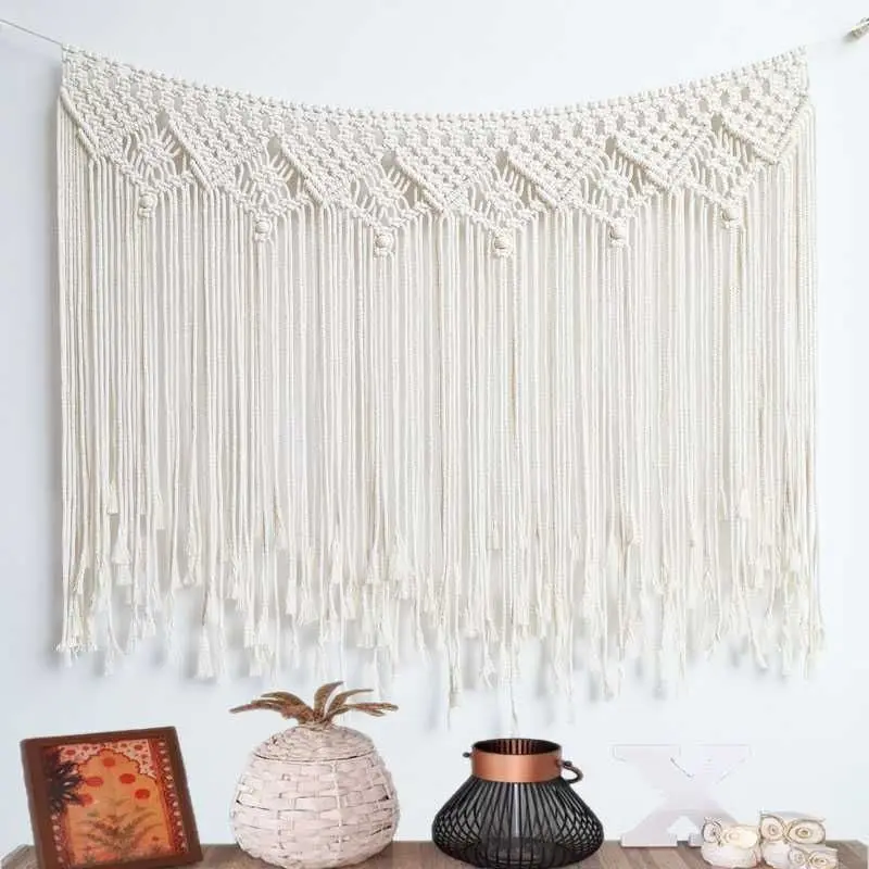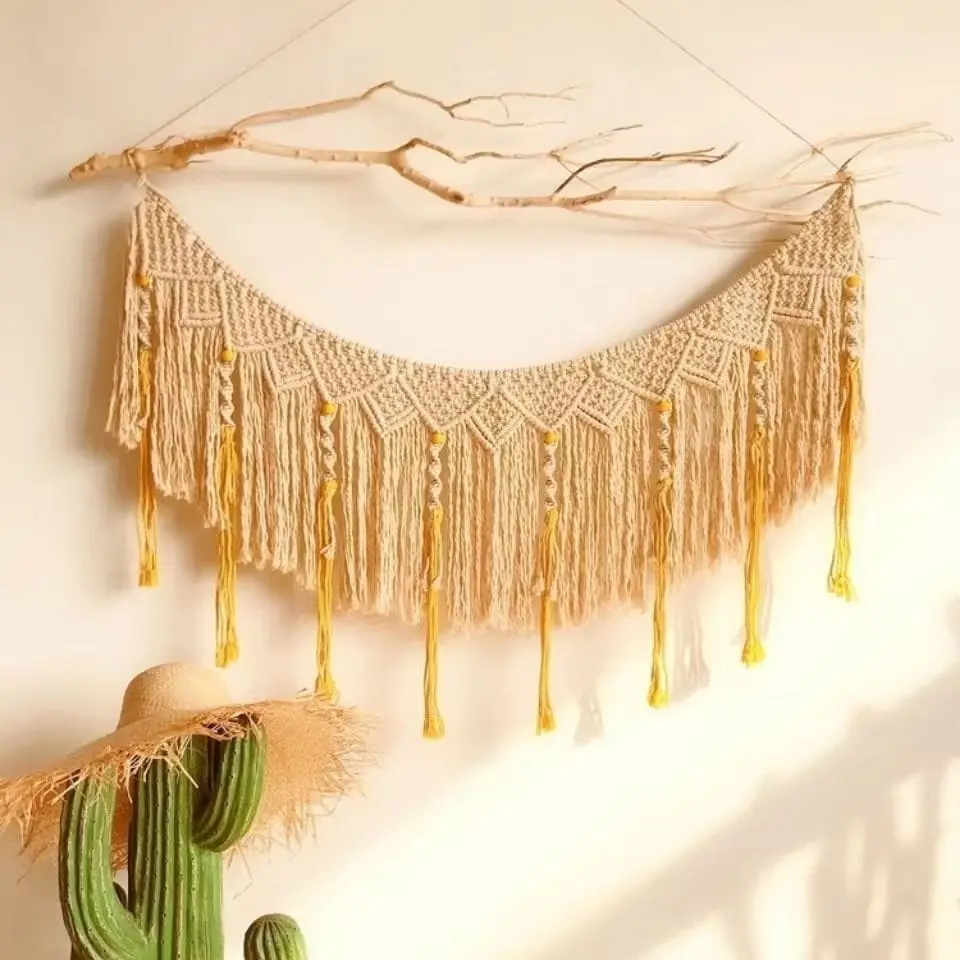 This hand-woven bohemian tapestry is incredibly versatile. Use it as an eye-catching bedroom wall decoration to create a cozy, intimate atmosphere. Its elegant design also serves as an excellent kindergarten partition curtain, gently dividing spaces while maintaining visual interest and a calming environment. Perfect for classrooms, playrooms, or shared bedrooms, it functions beautifully as both decoration and functional room divider.