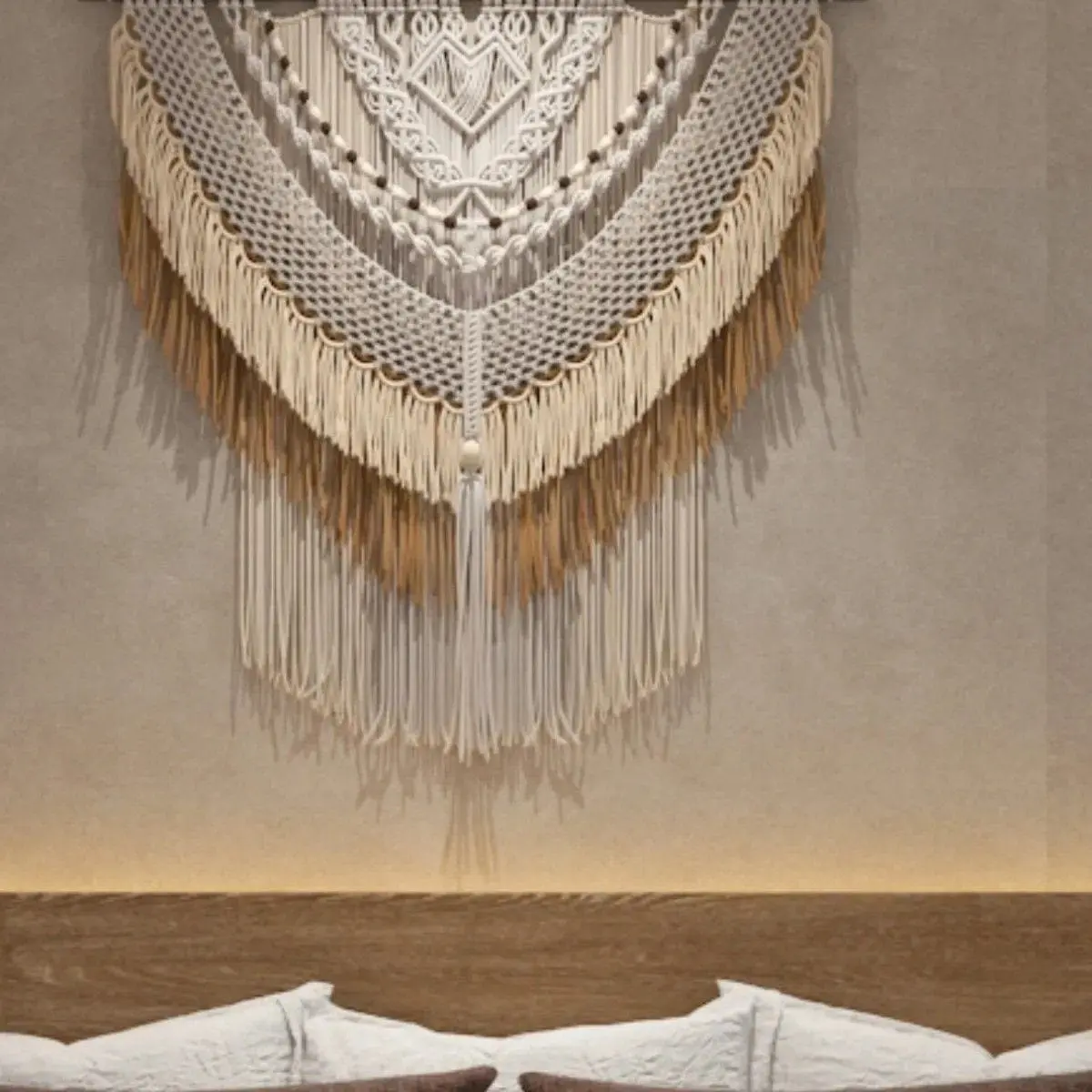 Hotel Background Wall Distinction: Establish prestigious brand identity across luxury hotel properties with our hand-woven bohemian wall decoration. These vintage high-end wall hanging masterpieces serve as signature design elements in suites, hallways, and boutique spaces—creating sophisticated atmospheres that guests recognize, remember, and Instagram. The bohemian aesthetic reinforces luxury positioning while maintaining contemporary luxury hospitality standards.