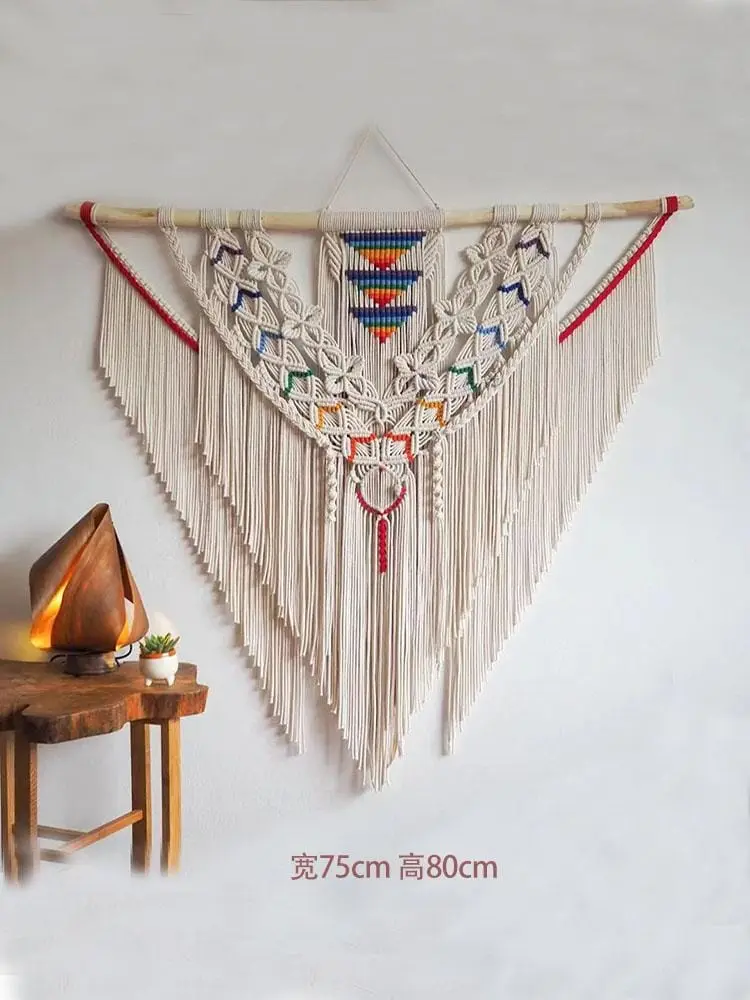 Master bedrooms seeking serene yet colorful focal points, living rooms desiring unique statement art, Scandinavian interior enthusiasts, bohemian style lovers, modern minimalist home décor seekers, contemporary apartments, gallery walls, meditation spaces, creative studios, boutique hotels, coffee shops, and anyone appreciating authentic handcraft. This hand-woven colorful tassel tapestry appeals to design-conscious individuals who refuse to compromise between aesthetics and authenticity.
