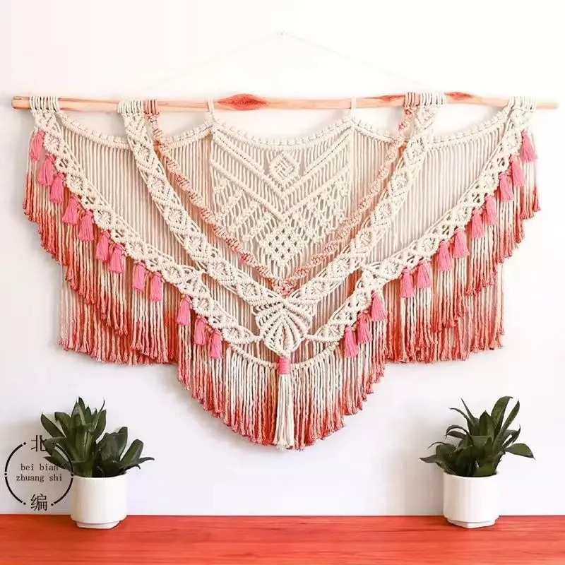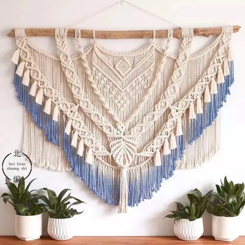 Transform any room with our exquisite hand-woven dyed tassel tapestry, a versatile piece that brings bohemian charm and artistic elegance to your home. Each hand-woven dyed tassel tapestry is carefully crafted by skilled artisans using traditional weaving techniques combined with natural dyes to create stunning, one-of-a-kind textile art.