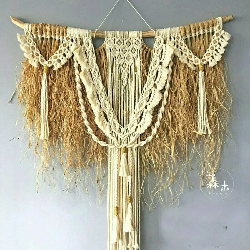 The natural raffia material and handmade construction create immediate vintage authenticity—this hand-woven raffia tapestry never appears mass-produced or artificially aged. Unlike synthetic vintage reproductions, genuine handmade pieces possess intrinsic character that conscious consumers recognize and appreciate. Guests immediately notice the difference between authentic vintage craftsmanship and commercial imitations.