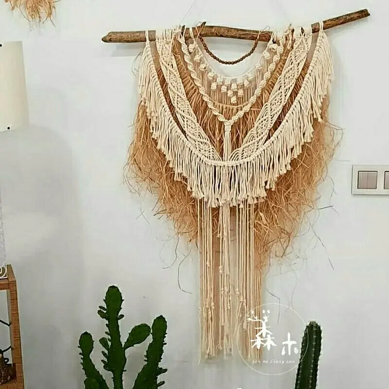 Position your hand-woven raffia tapestry where natural light reaches it, maximizing the material’s dimensional texture and color depth. Layer with complementary décor—Moroccan poufs, Nordic wooden furniture, global artwork, natural plants, or ambient lighting—to amplify the cultural fusion aesthetic.