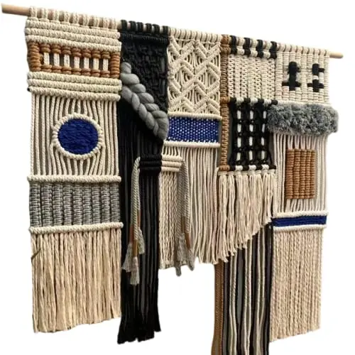 This hand-woven tapestry features elegant tassel detailing and professional finishing for hospitality and home spaces. Perfect as bedside décor for guesthouses, dormitories, or boutique accommodations with timeless design appeal. Durable cotton-polyester blend ensures long-lasting beauty while maintaining easy care and quick installation.