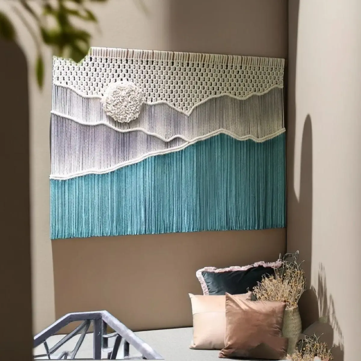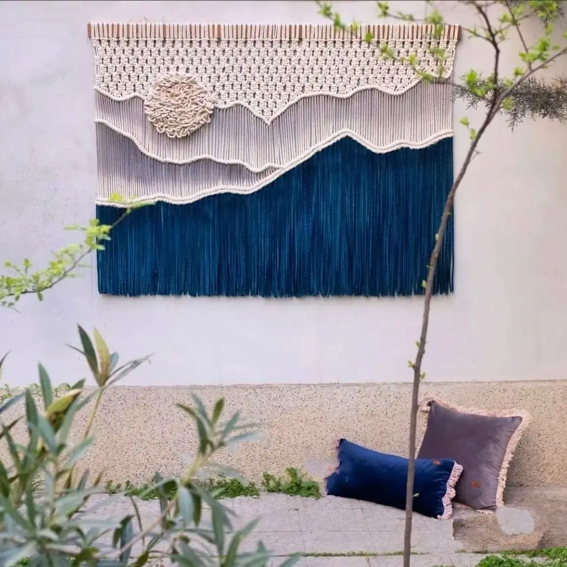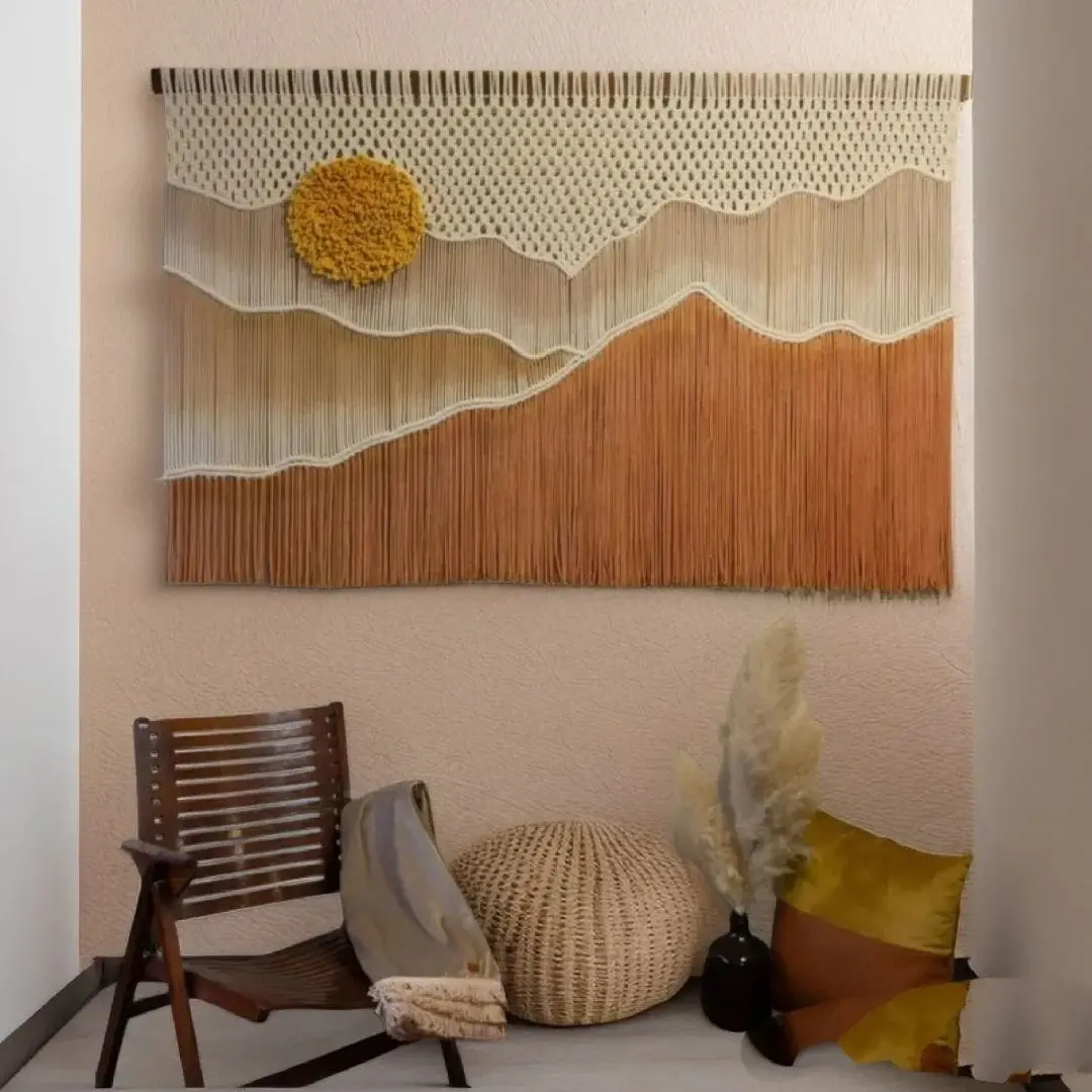 Flowing tassels extend from the woven body, adding kinetic beauty as they sway gently with air movement from opening doors, ceiling fans, or breezes through windows. This subtle motion brings walls to life, creating the dynamic, lived-in feeling that distinguishes exceptional homestays from sterile hotel chains. The tassel length is carefully proportioned to create elegant draping without touching furniture or causing practical issues.