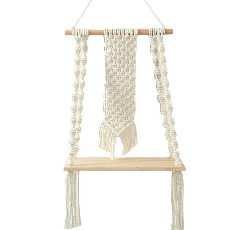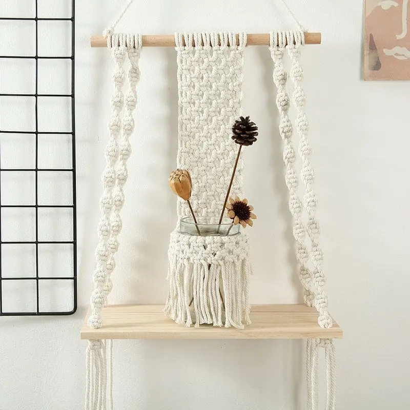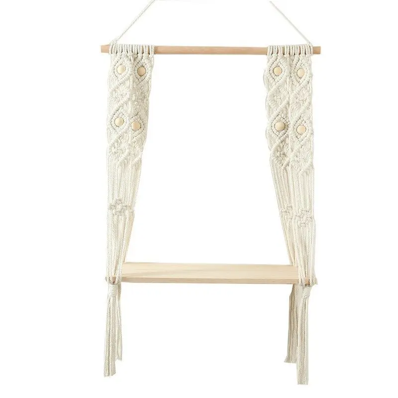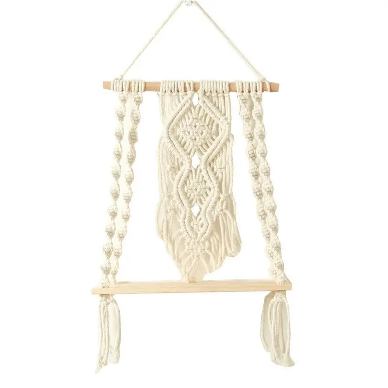 Combine storage functionality with bohemian artistry through hand-woven tapestry shelf featuring premium cotton rope construction. This multi-compartment wall hanging displays objects while creating inviting tactile textures for families and hospitality spaces. Perfect for guesthouses, children’s rooms, and residential spaces seeking affordable artisan quality with child-safe design.
