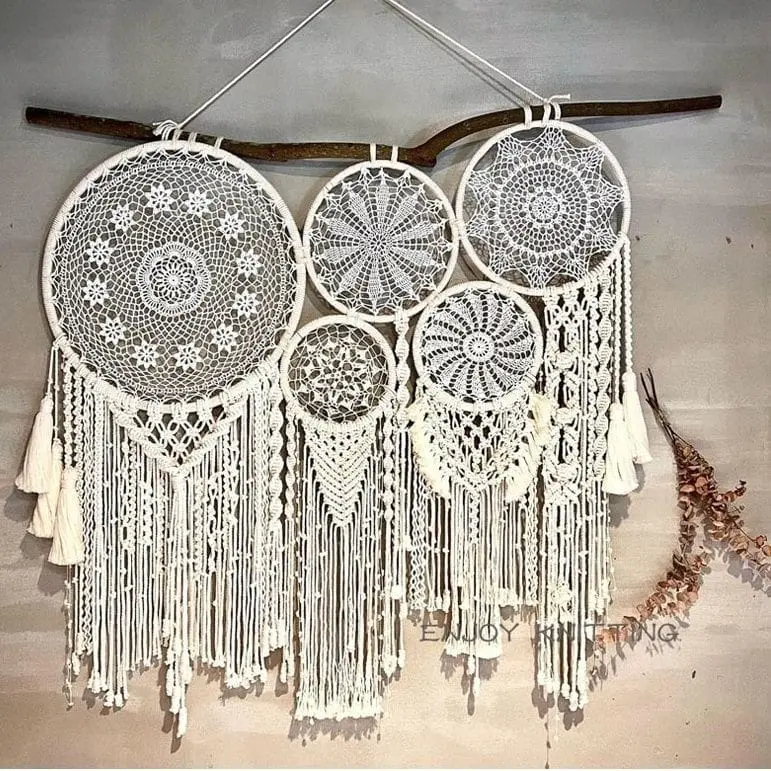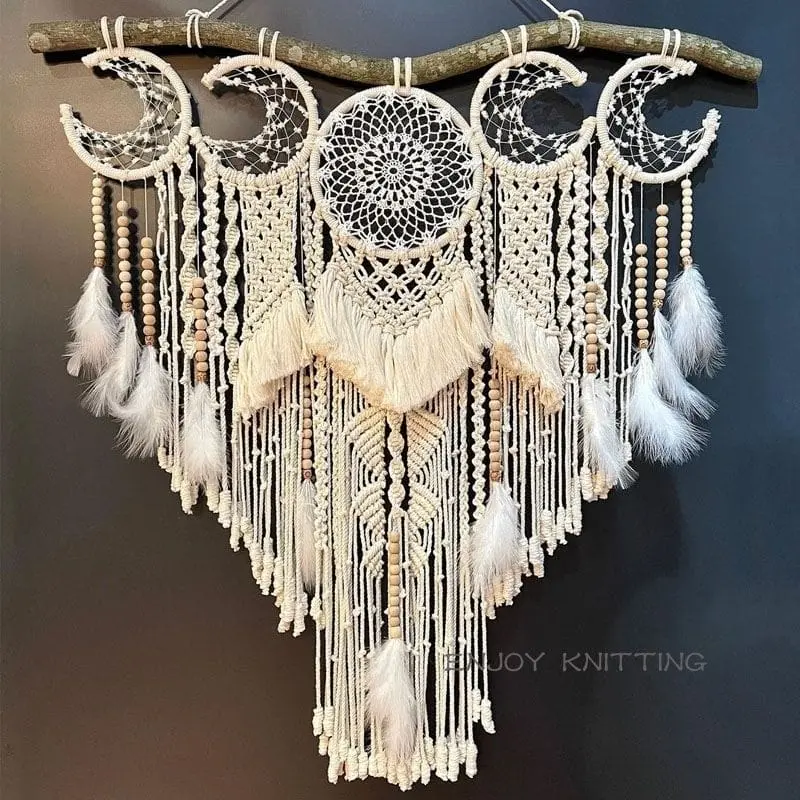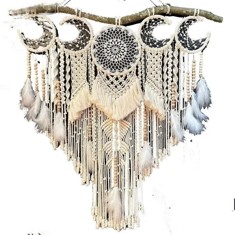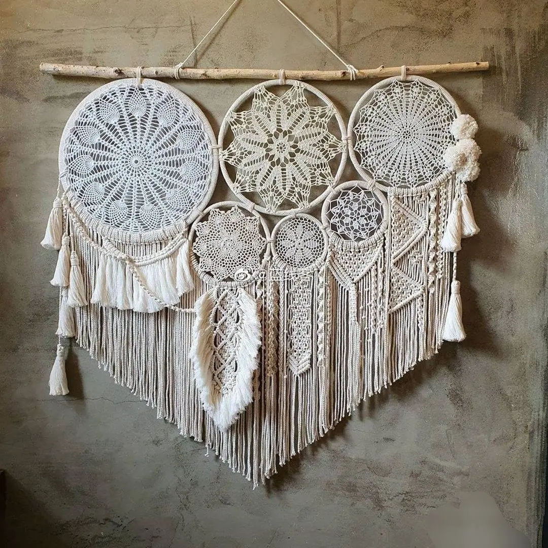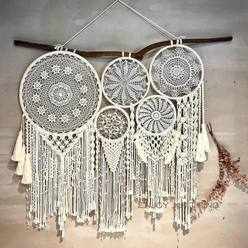 This handmade ethereal dreamcatcher blends Native American spiritual symbolism with Nordic Bohemian aesthetics and delicate feminine detailing. Perfect for guesthouses, hotels, or bedrooms seeking enchanting focal points with soft romantic colors and cultural artistry. Eco-friendly natural materials support ethical artisan communities while creating magical spaces with spiritual protection and timeless charm.