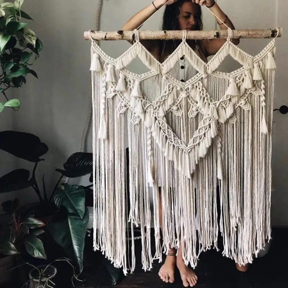 Elevate your interior design with this stunning handmade Nordic tapestry wall hanging that combines Scandinavian minimalism with bohemian charm. Each piece is carefully crafted by skilled artisans, featuring intricate woven patterns and elegant tassel details that create an Instagram-worthy focal point in any space.