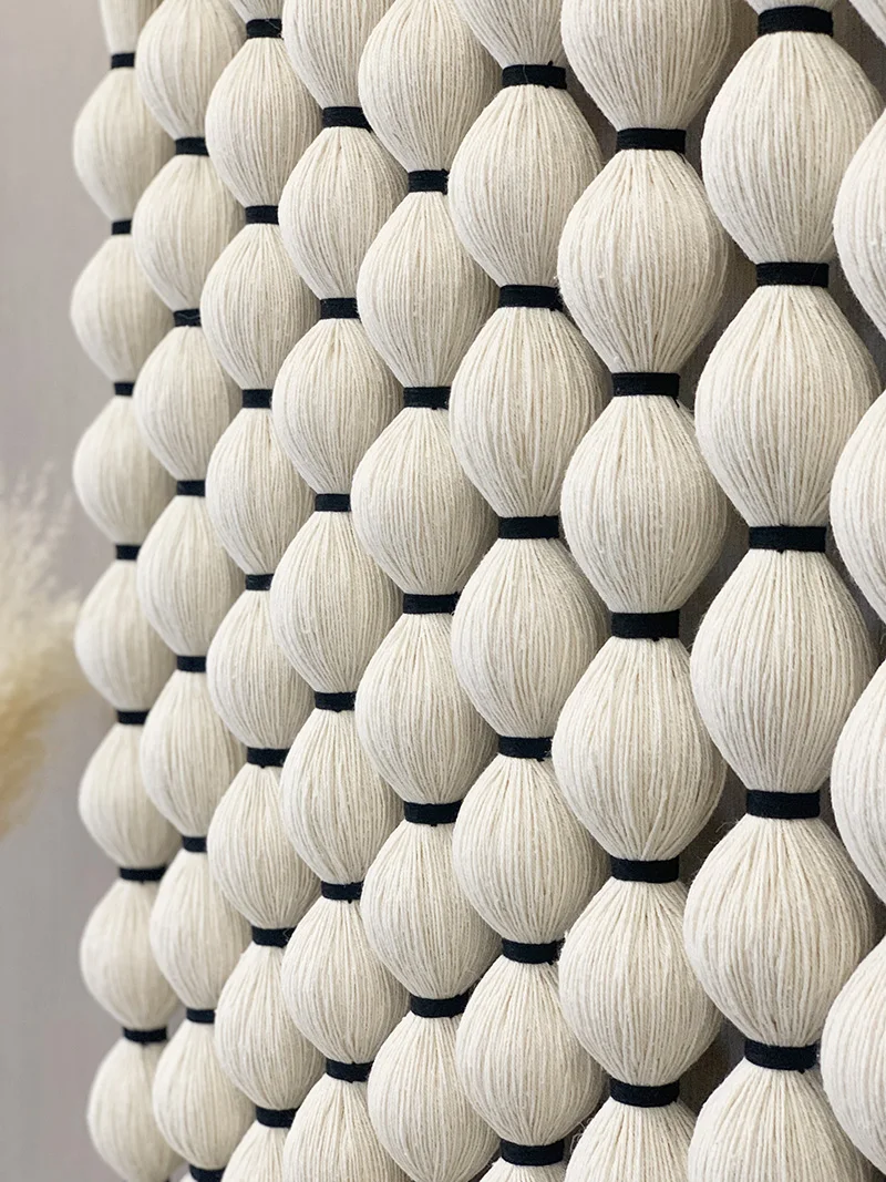 Spherical textile wall hangings are often lightweight and soft, thus creating a relaxing, welcoming atmosphere when hung on the wall.