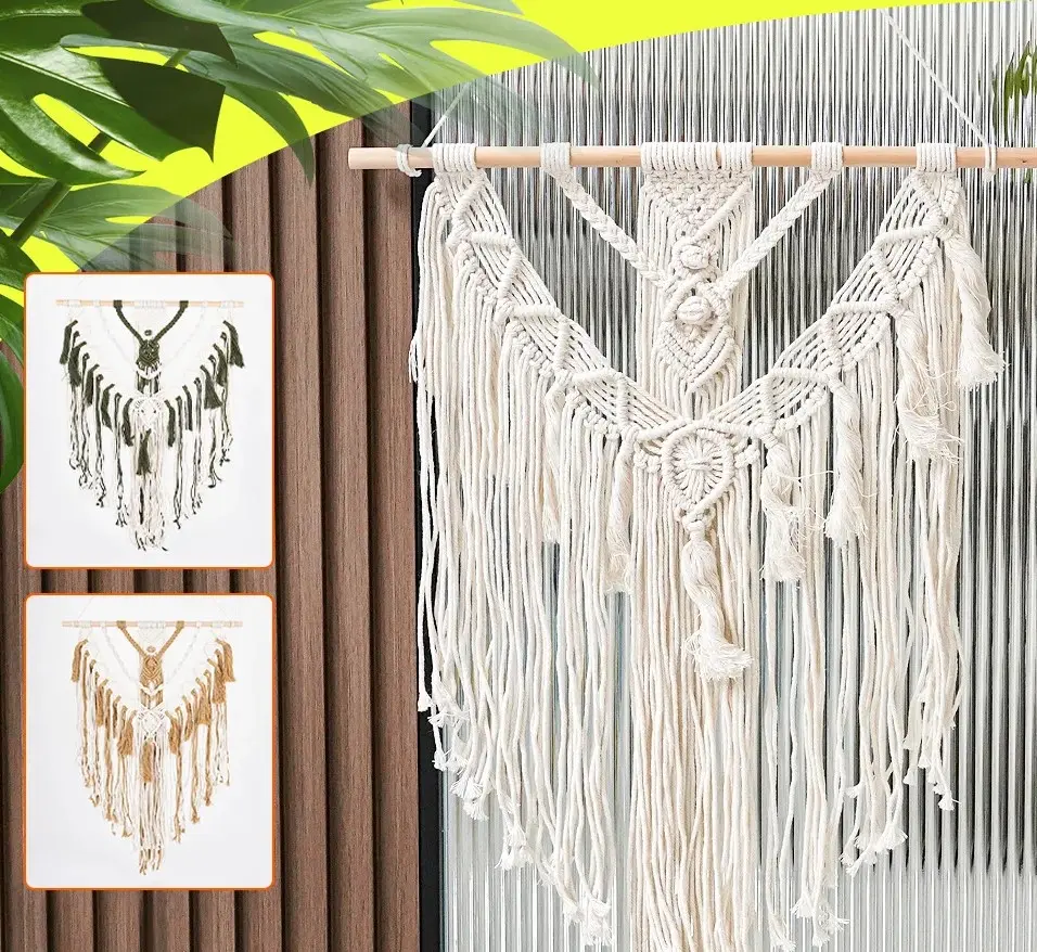 This handcrafted macrame tapestry blends Nordic simplicity with bohemian soul featuring flowing tassels and graceful movement. Made from eco-friendly premium cotton rope, each piece showcases unique hand-woven craftsmanship that ages beautifully. Perfect for living rooms or bedrooms, it brings timeless textured warmth creating peaceful intentional spaces.
