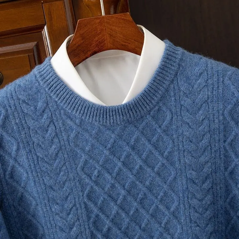 The design specifically suits mature men’s preferences and needs. Therefore, the comfortable fit works with aging body types. Moreover, this round neck jacquard sweater provides practical comfort. Additionally, the classic style appeals to established tastes.