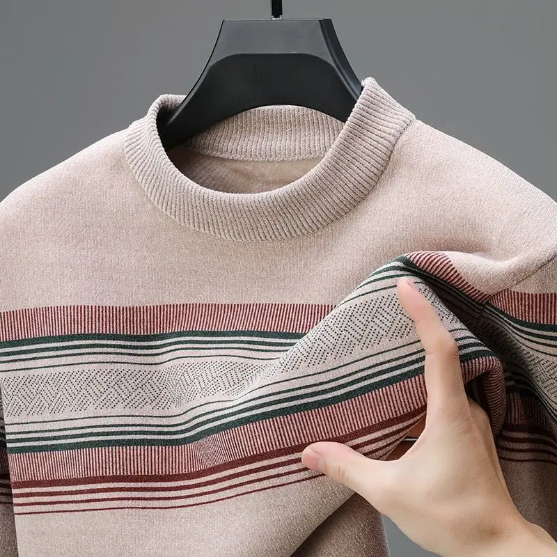 The sweater accommodates various layering options beneath comfortably. Therefore, you can adjust warmth levels based on weather. Moreover, the round neck allows visibility of inner layers. Additionally, the structured fit maintains shape throughout extended wear.