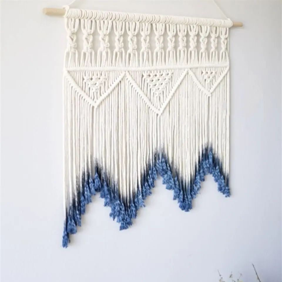 Living Room Serenity: Transform living spaces with this Nordic hand-woven dyed hanging ornament positioned as a background wall decoration that establishes calm, intentional atmospheres. The tapestry creates visual interest without visual assault, adding texture and depth while maintaining the serene aesthetic Nordic design demands.