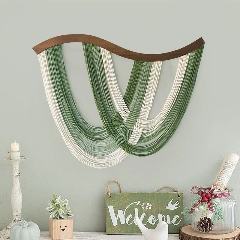 Crafted from sustainably sourced natural fibers—linen, cotton, and wool blends—this Nordic style hand-woven piece prioritizes environmental responsibility while ensuring lasting durability. The carefully selected materials develop character over time, aging beautifully and becoming increasingly cherished. Natural fiber composition ensures this curved tassel tapestry breathes, resists fading, and maintains visual vibrancy for decades of daily enjoyment and professional hospitality use.