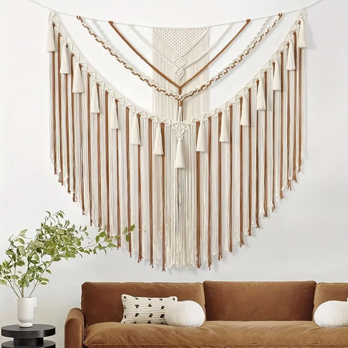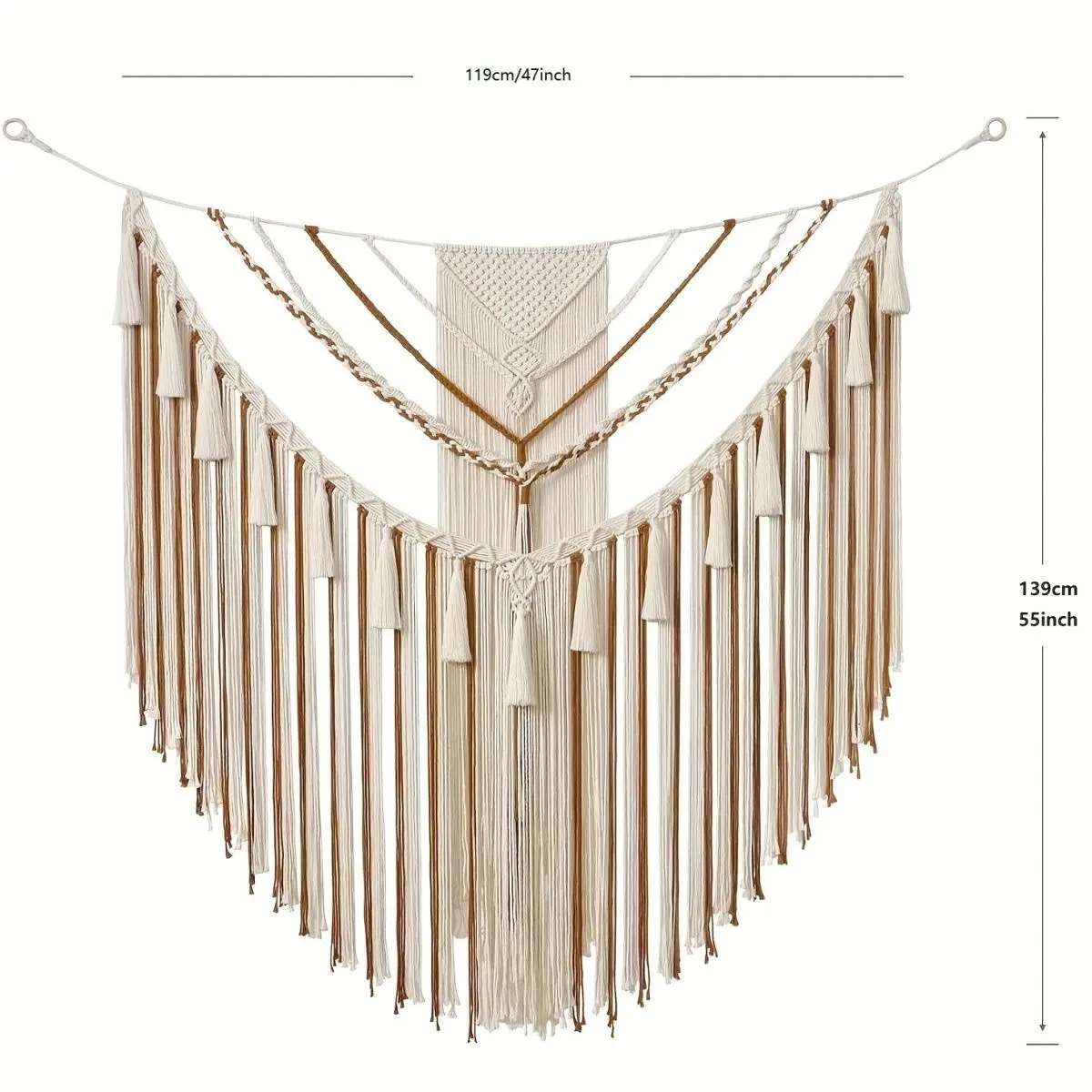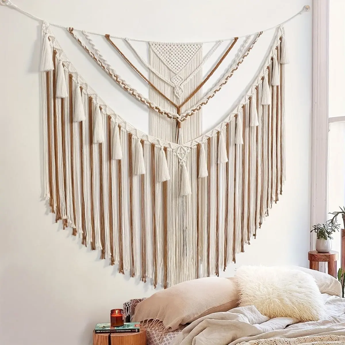 The weaving technique employed in our Nordic-style oversized hand-woven tapestry with tassels reflects generations of textile tradition. Hand-loomed construction creates subtle variations in tone and texture that make this perfect wall decoration genuinely unique. No two pieces are identical, ensuring your Nordic-style oversized hand-woven tapestry with tassels is truly one-of-a-kind.