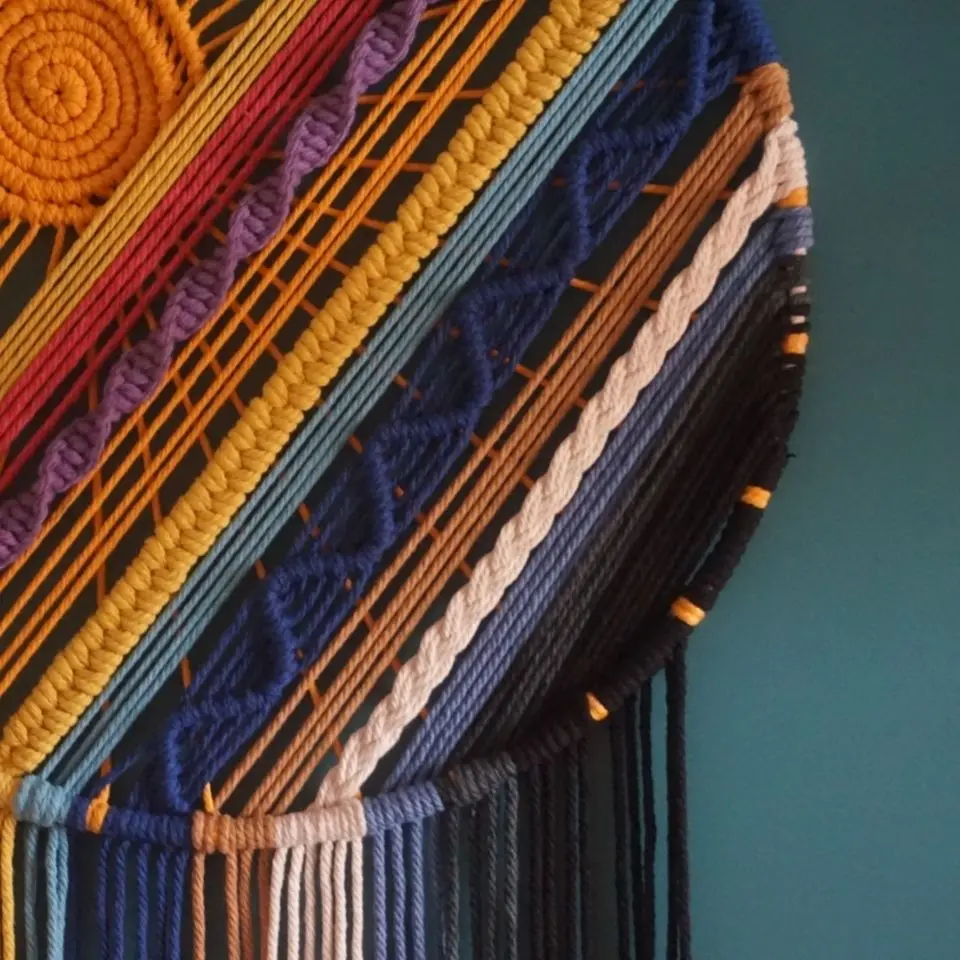 Crafted from 100% natural cotton rope, this eco-friendly tapestry represents sustainable decorating at its finest. Cotton is breathable, durable, and biodegradable—a renewable resource that aligns with environmentally conscious lifestyle choices. The rope’s substantial thickness creates impressive visual impact while remaining lightweight enough for easy installation on any wall surface.