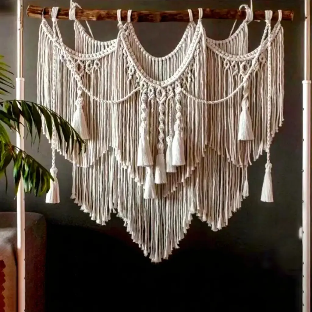 Infuse your space with serene Scandinavian style using this eco-friendly macrame wall hanging. Its natural woven texture creates a calming focal point economically and sustainably. Enjoy effortless bohemian elegance that elevates any room’s ambiance.