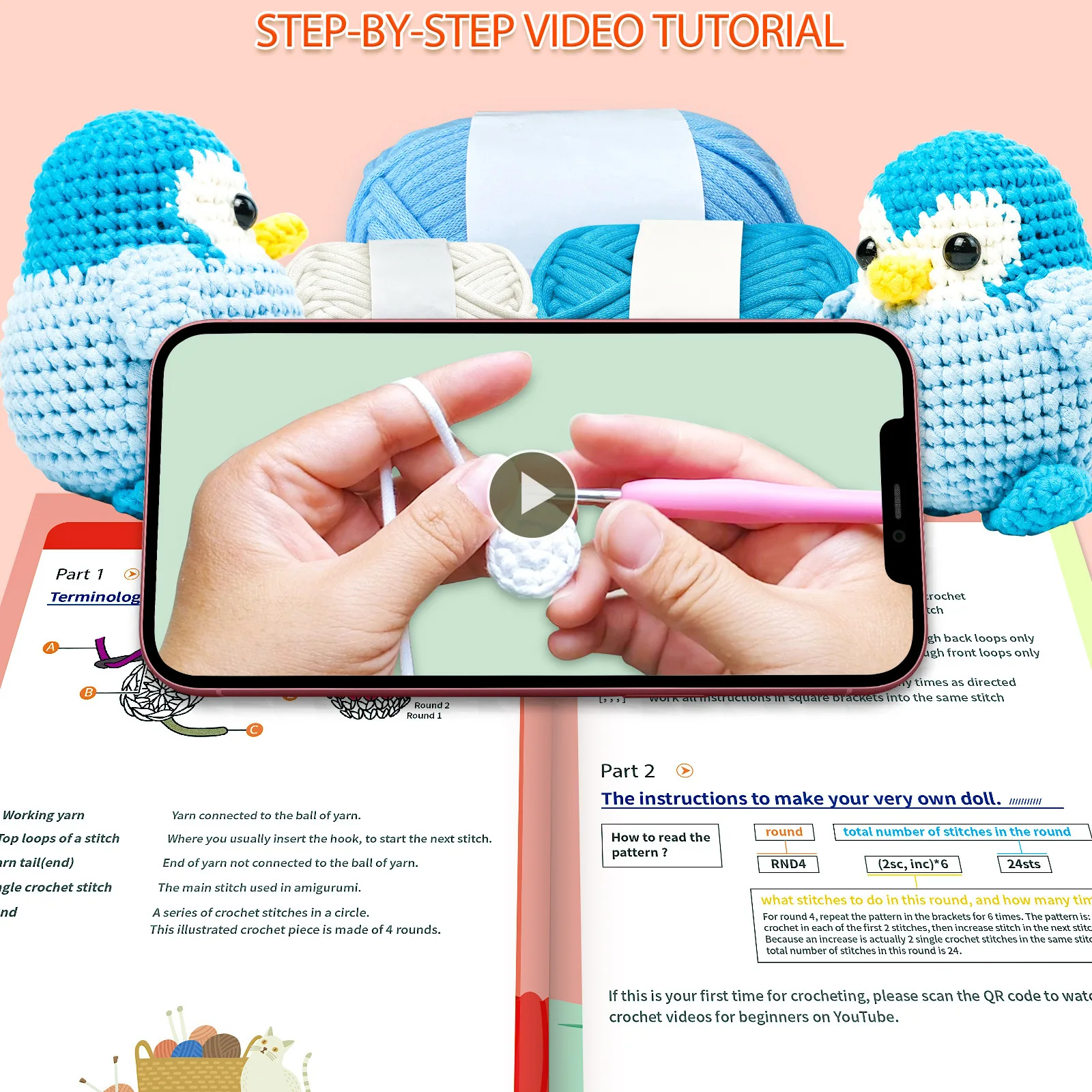 This charming penguin crochet kit features easy yarn with instruction manual and video tutorials perfect for beginners. The complete package includes all essential supplies for adults and children to create adorable handmade penguin plushie. Perfect for creative family activity with simple guided instructions and enjoyable rewarding crafting experience.