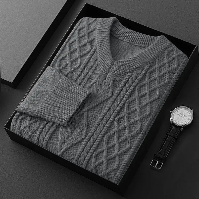 This premium cardigan features classic cable knit pattern with thickened construction for luxurious autumn and winter warmth. The elegant V-neck showcases inner layers beautifully while versatile button-front allows easy temperature adjustment. Perfect for sophisticated styling with timeless appeal and flexible layering capabilities throughout seasons.