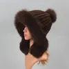 - 1 × Real Mink Fur Hat with Fox Fur Ball Earmuffs