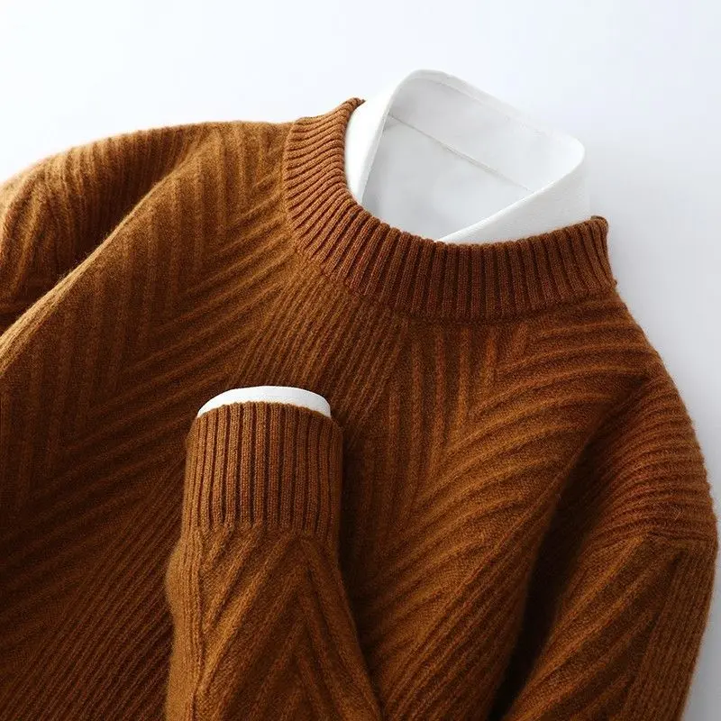 This round neck sweater features premium thick knit construction delivering exceptional warmth and professional versatility. The classic neckline with loose fit flatters various body types while solid color suits business casual settings. Perfect for autumn and winter as a reliable base layer with sophisticated everyday appeal.