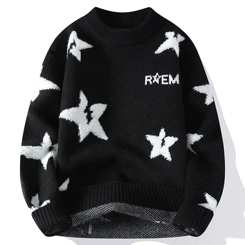 Pair this sweater with tailored jeans for elevated casual looks. Subsequently, combine it with joggers for relaxed weekend vibes easily. You can also layer it under jackets for added depth. Additionally, the star pattern complements both neutral and bold accessories beautifully.