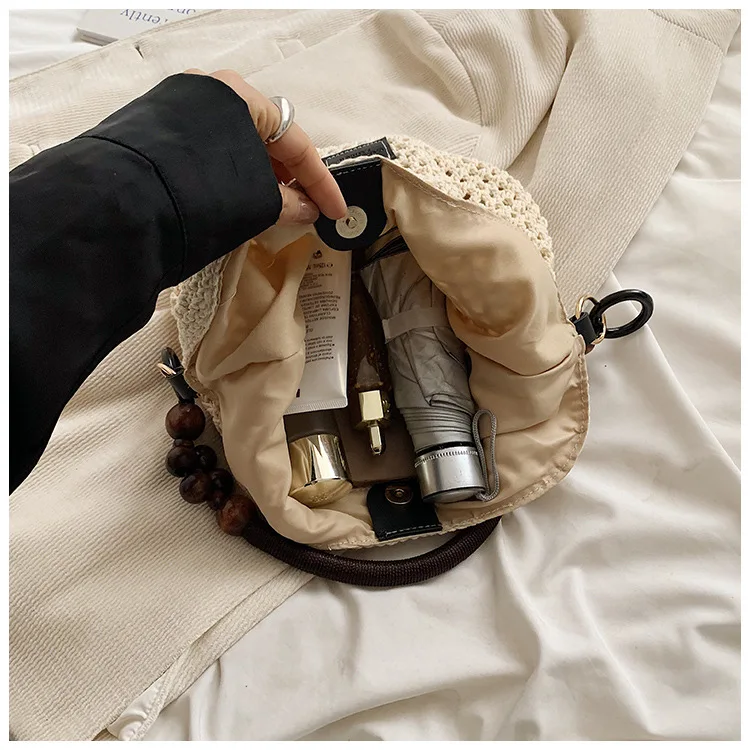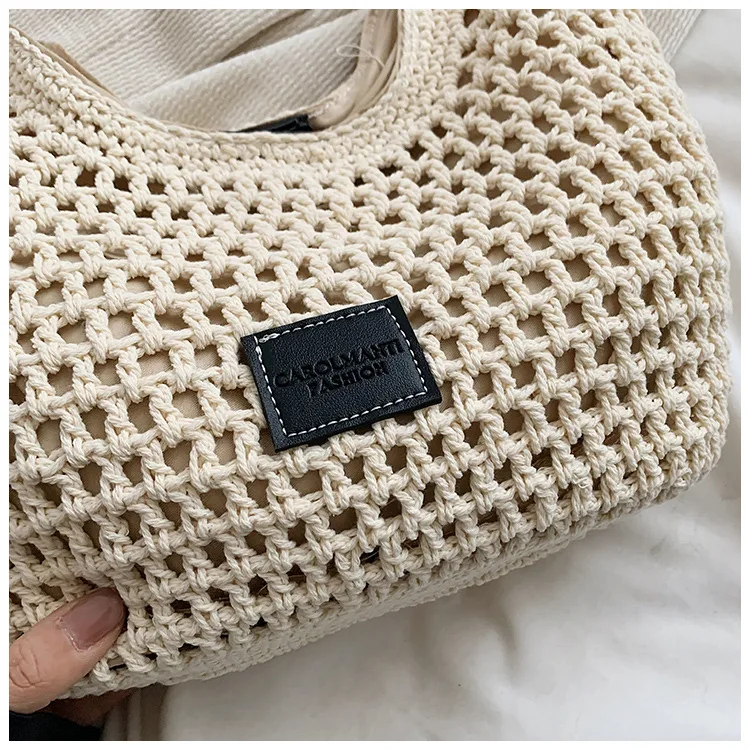 Beat the heat in style with this beautifully crafted hollow woven tote that’s perfect for those long summer days. The intricate woven pattern isn’t just gorgeous to look at – it also lets air flow through, keeping your belongings cool and fresh during beach trips or outdoor adventures.