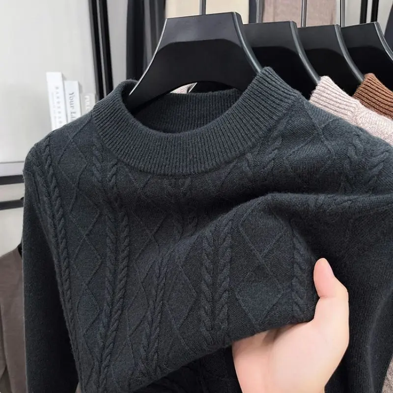 This thick round neck sweater features premium knit construction delivering exceptional warmth for autumn and winter. The classic neckline flatters various body types while fashion business design suits professional and casual occasions. Perfect as a versatile base layer with contemporary sophisticated appeal for everyday wear.
