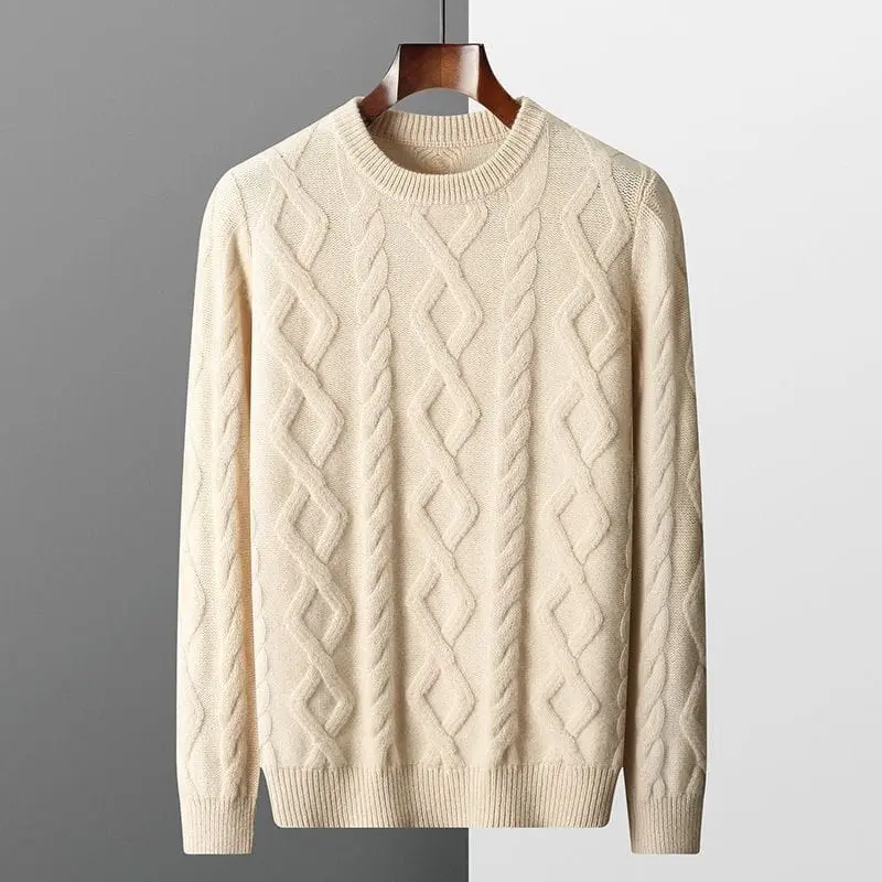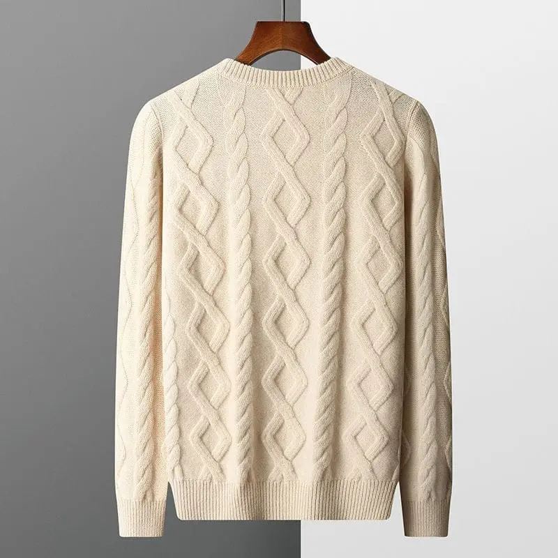 The distinctive twisted knit creates visual interest and texture. Consequently, the intricate pattern adds contemporary casual appeal. Moreover, this round neck twisted pattern maintains quality indefinitely. Additionally, the twisted motif suits casual environments perfectly.