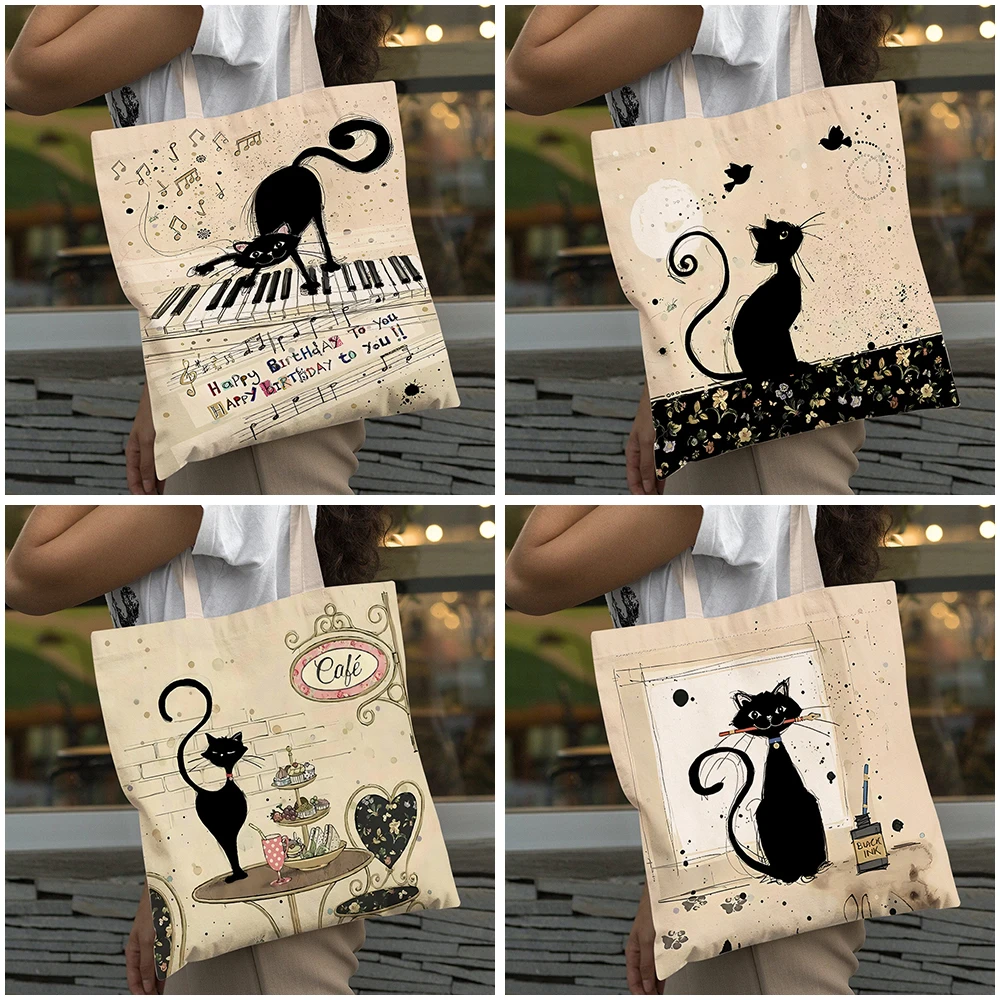 Embrace your love for literature and felines with this charming vintage-style tote bag. Featuring adorable cartoon cats and book motifs in a unique double-print design, this bag is perfect for bibliophiles, cat enthusiasts, and anyone who appreciates quirky, artistic accessories.